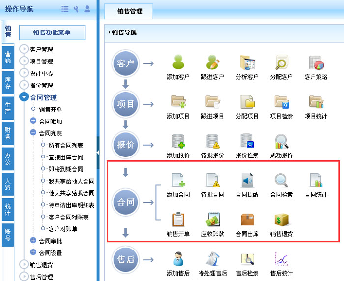 智邦国际工程师在了解到企业基本管理需求后,为其推荐演示了智邦国际ERP系统销售版,企业管理层表示系统功能可以满足企业所需,并最终购买了智邦国际ERP系统。智邦国际ERP系统销售版拥有销售、库存、财务、人资及办公等功能模块,致力于助力企业构建智能化信息管理平台,智能管控线上合同全流程,全面提高合同管理效率与企业经营效益。