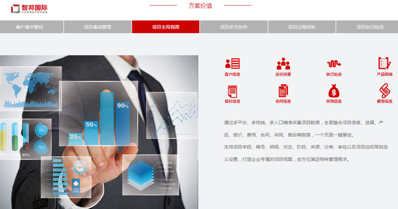 智邦国际工程师在了解到企业日常管理需求后,为其推荐演示了智邦国际ERP系统销售版,企业管理层认为系统功能可以满足企业管理所需,在经过内部讨论后,最终决定与智邦国际达成合作。智邦国际ERP系统销售版包含销售、营销、库存、财务、人资及办公等功能模块,其中项目总览环节,更是助力企业一体化掌控项目周期全过程,有效处理项目问题以及防范项目风险,提高经营效益。